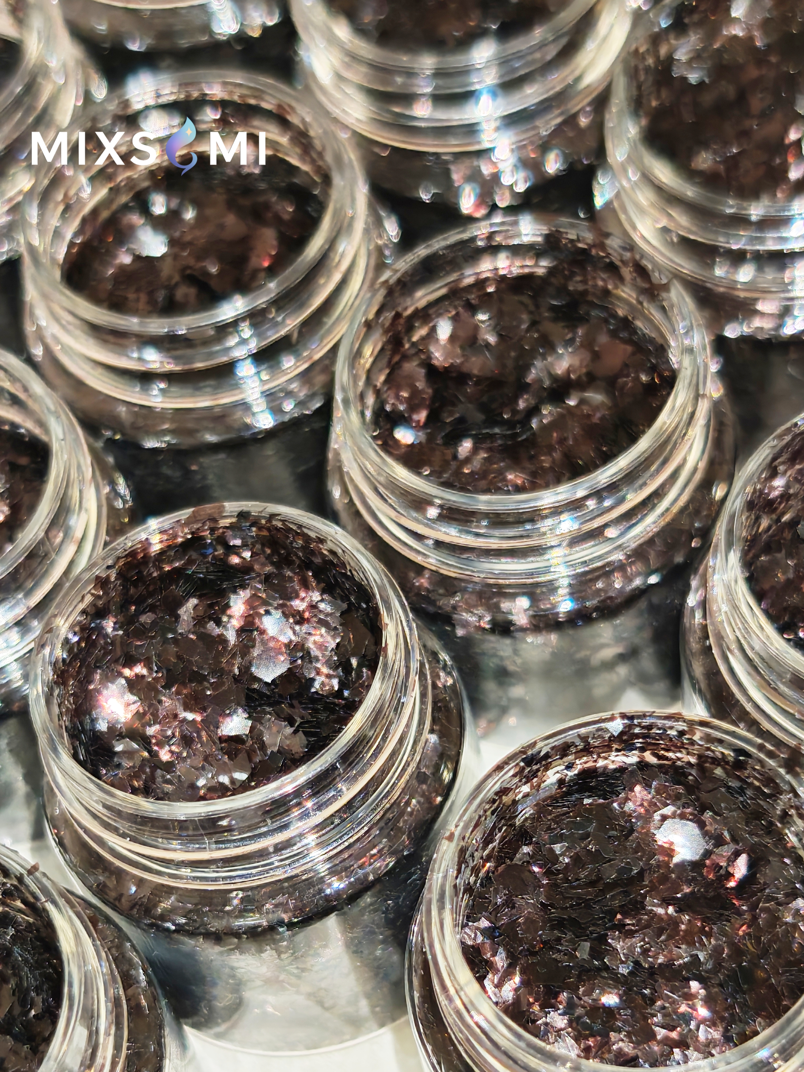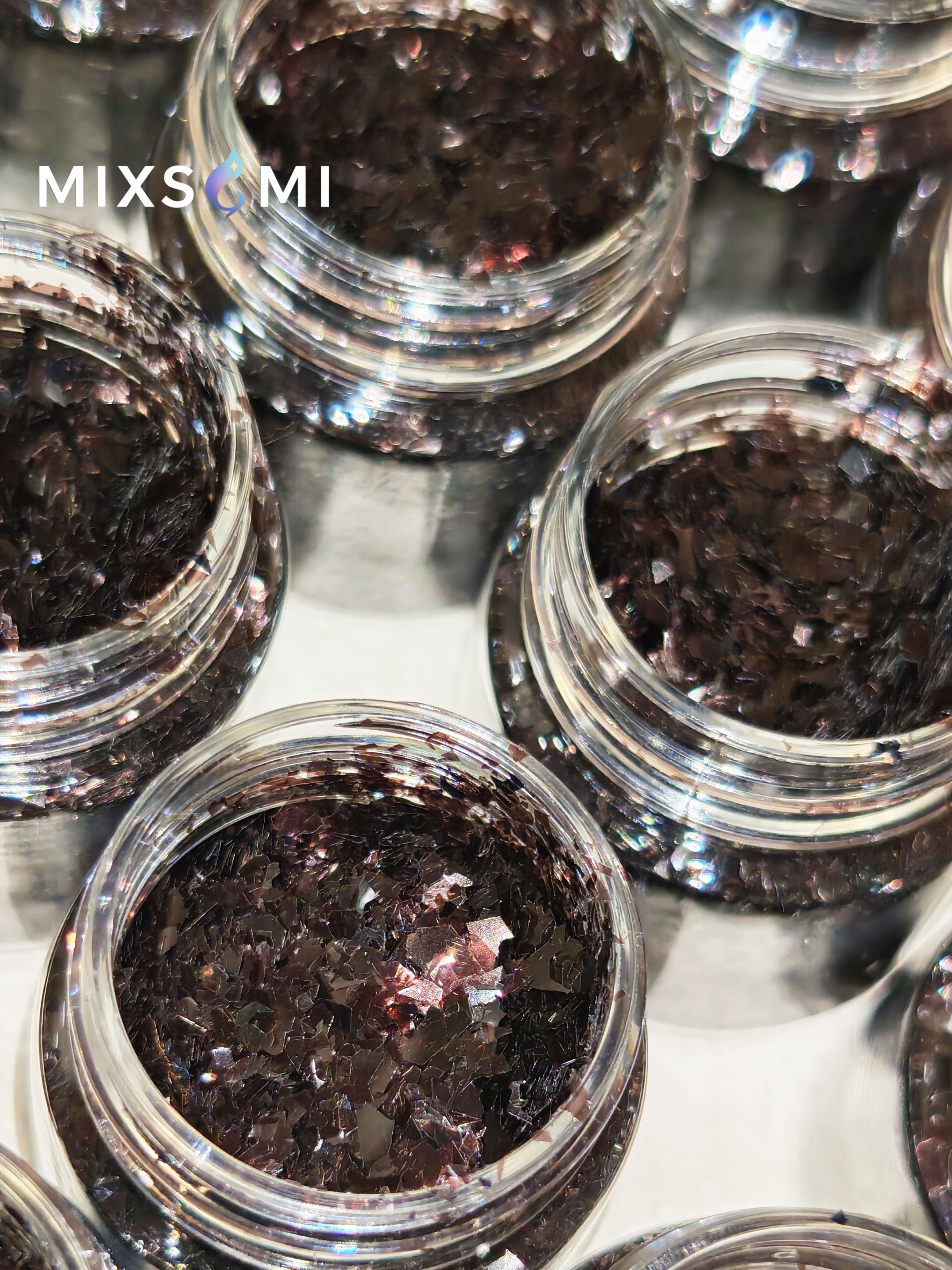 Коричневый прозрачный глянец с блеском и мерцанием в форме битого стекла битого стекла разных размеров. Легко перемешиваются и создаются необыкновенные цветные композиции. Широко применяются для литья изделий из смолы, силикона, дизайна ногтей, в макияже для рук - тела в боди-арте, декоре и украшений, ремонте и дизайне, праздничном оформлении и т.д. Могут быть добавлены в лак, а также нанесены сверху на еще влажную краску или лак. Чтобы хлопья не осыпались в процессе использования декорированного изделия, их можно покрыть сверху лаком