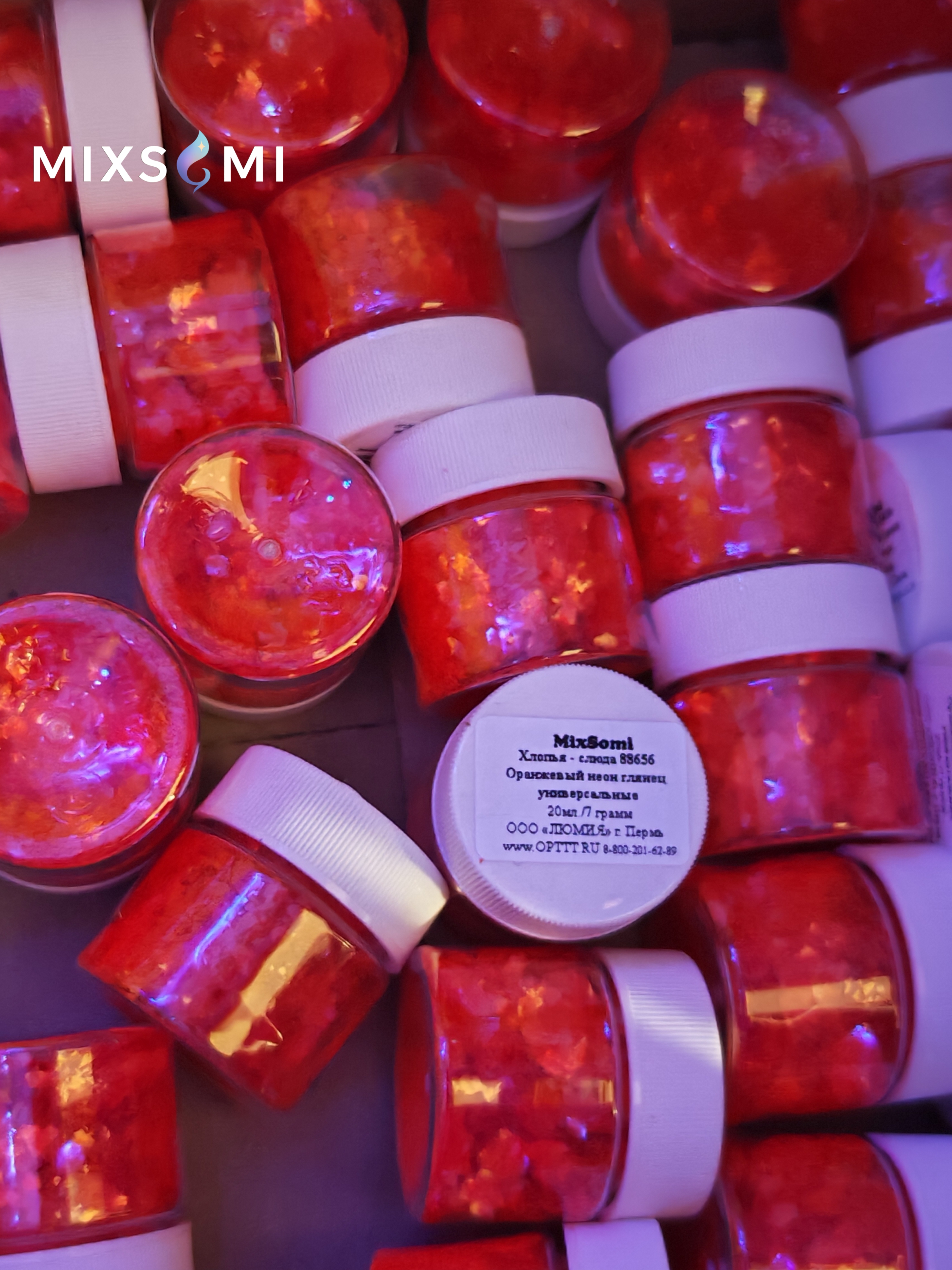 88656 Оранжевый неон (с дополнительным свечением в ультразвуковом свете) ярким насыщенным неоновым цветом блеском и мерцанием в форме битого стекла разных размеров. Легко перемешиваются и создаются необыкновенные цветные композиции. Широко применяются для литья изделий из смолы, силикона, дизайна ногтей, в макияже для рук - тела в боди-арте, декоре и украшений, ремонте и дизайне, праздничном оформлении и т.д. Могут быть добавлены в лак, а также нанесены сверху на еще влажную краску или лак. Чтобы хлопья не осыпались в процессе использования декорированного изделия, их можно покрыть сверху лаком